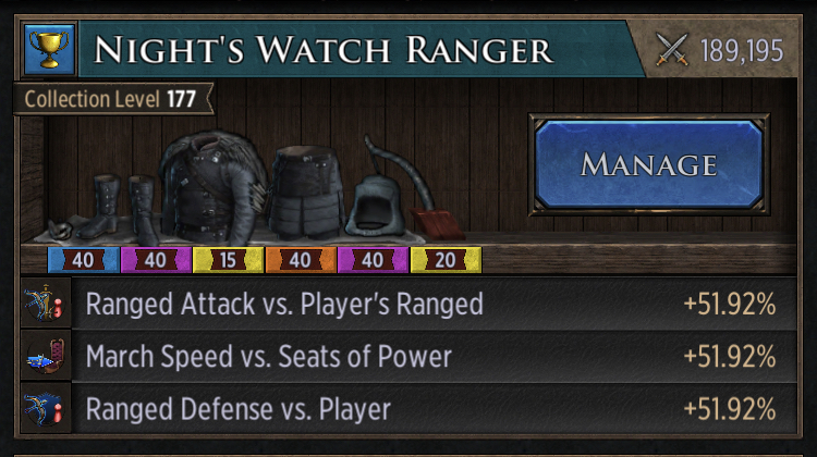 Remember, when it comes to the Armory it’s all about the collection bonus. Quality of the gear will improve the collection bonus, but the gear level improves it more.