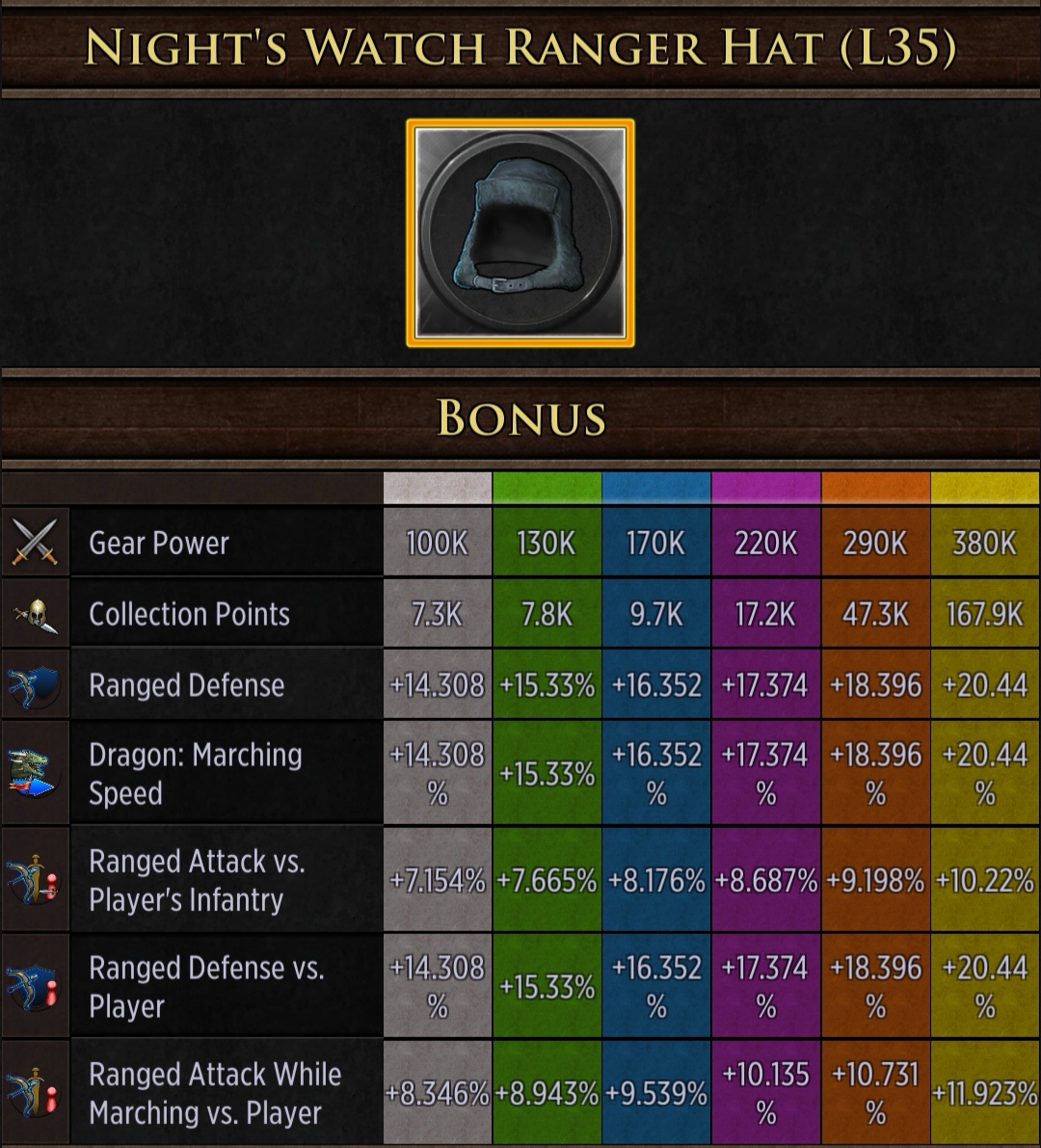 Last but not least, Dragon gear. If you have a level 31 dragon or higher you might want to look into crafting some Dragon gear for the armory. I would not advise wearing dragon gear on your profile as you only have one march that benefits from the boosts, but adding some dragon gear in the armory will boost your dragons stats when attacking or joining rallys.